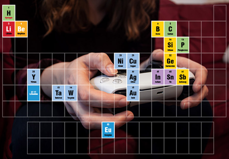 From silicon in LCD screens to boron in the processors to copper in the circuit boards, over a dozen unique mined materials are needed to power our video games.
